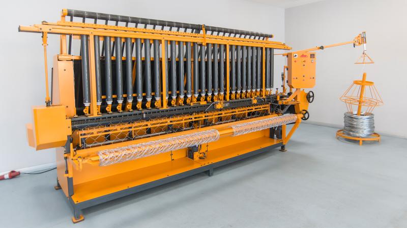 Makine kangaldan aldığı teli çok sıralı bobin haline getirir. Bobinlerden gelen telle altıgen tel örgüyü düz burgu metodu ile otomatik olarak örer.